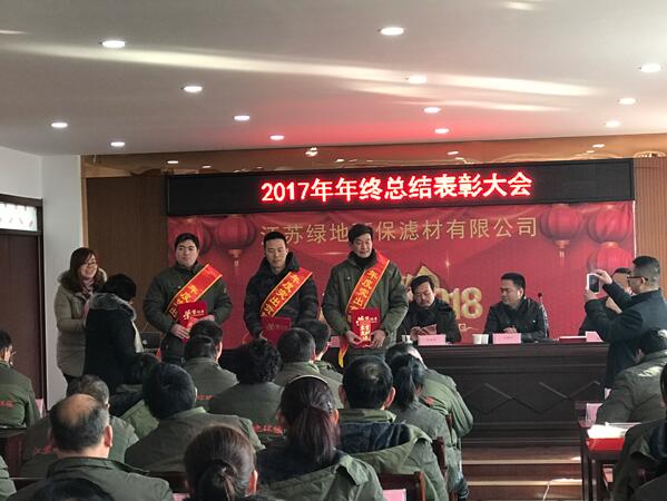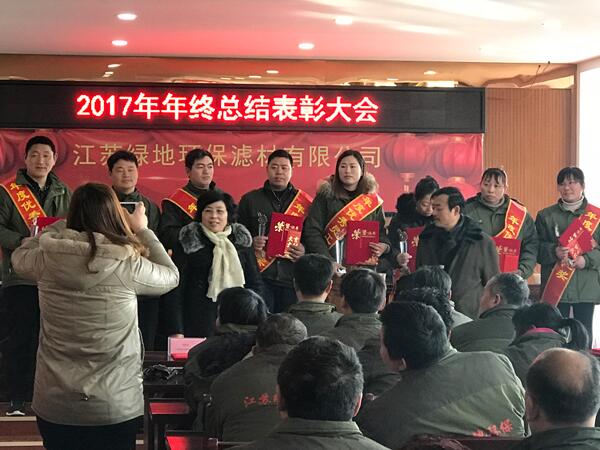 2月8日上午,江蘇綠地環(huán)保濾材有限公司在公司三樓會(huì)議室成功召開(kāi)了2017年年終總結(jié)表彰大會(huì)。 會(huì)議首先由周金華廠(chǎng)長(zhǎng)對(duì)全年2017年工作進(jìn)行了回顧總結(jié),北京公司劉總對(duì)2017年工作進(jìn)行了點(diǎn)評(píng),特邀代表大自然環(huán)保孫總做了重要講話(huà)。公司對(duì)現(xiàn)場(chǎng)投票產(chǎn)生了8名2017年度優(yōu)秀員工、10年員工進(jìn)行頒獎(jiǎng)并合影。 |